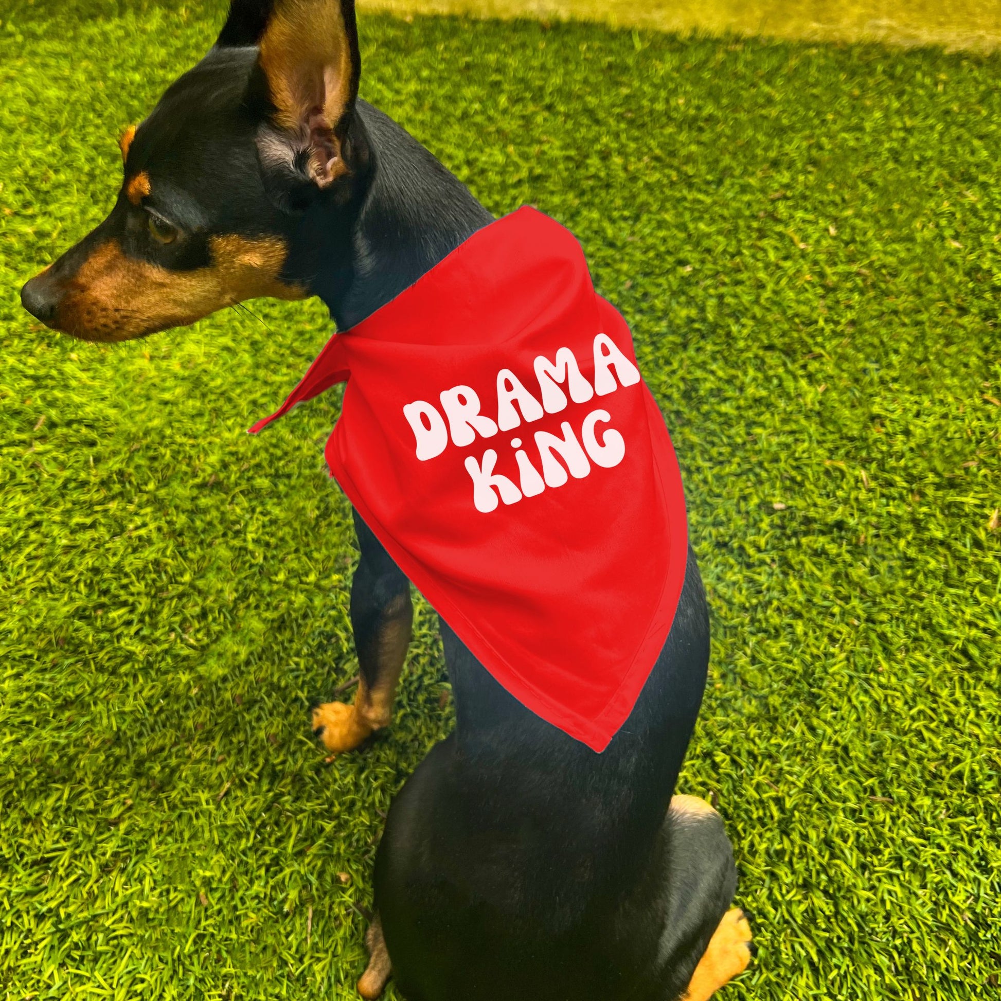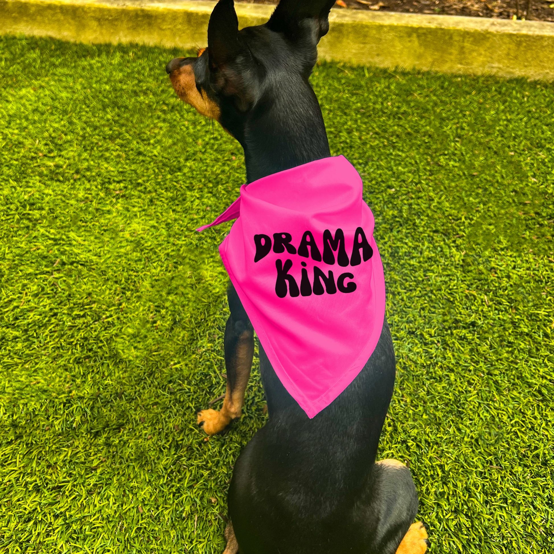 Add a touch of retro flair to your four-legged friend! The "Drama King" Retro Wave Dog Bandana features a bold, eye-catching design that'll turn heads everywhere. Perfect for adding a stylish edge to daily walks and special occasions!