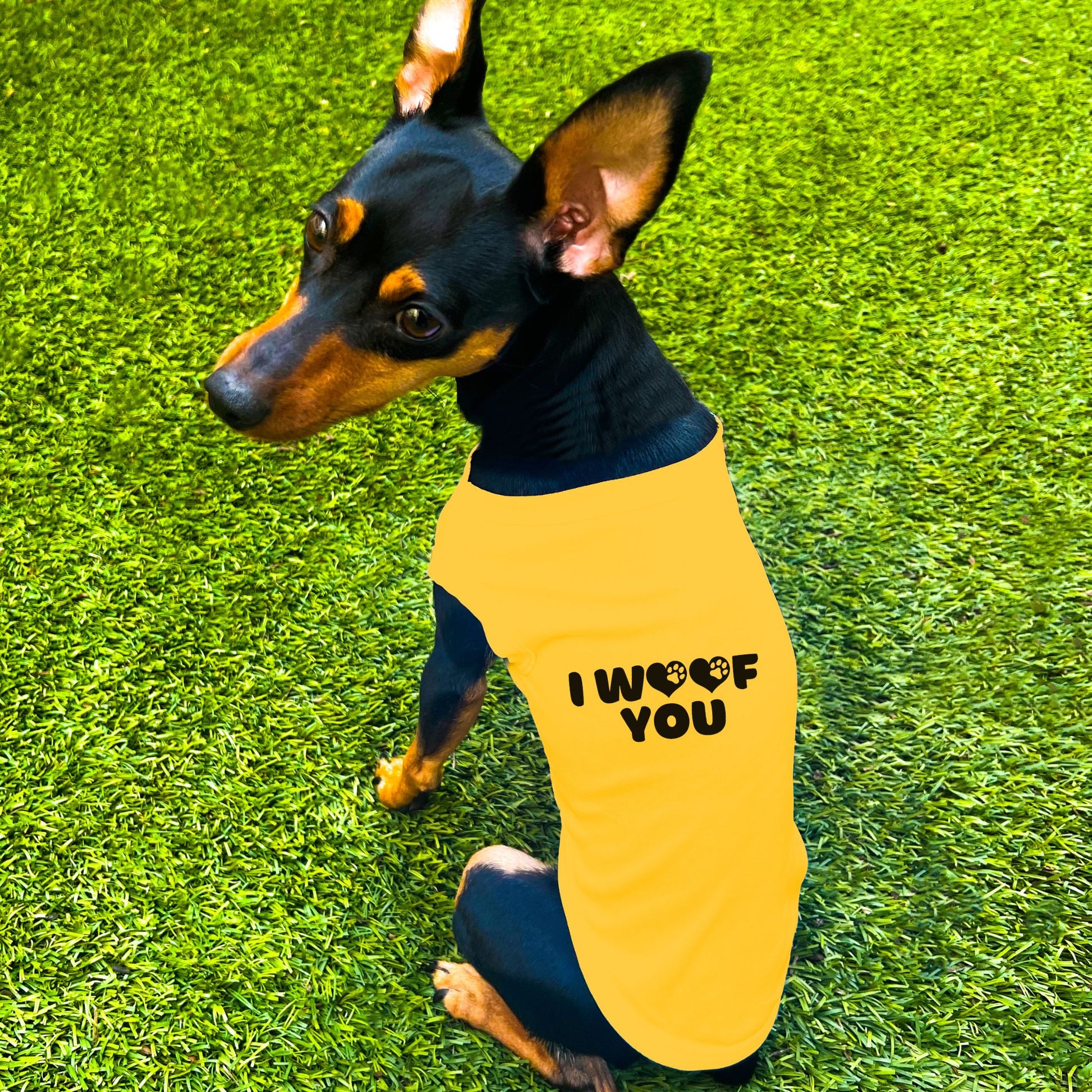 Express your unconditional love for your pup with our "I Woof You" Dog Shirt! Soft and stylish, this shirt is made from premium materials for ultimate comfort and durability so your pup can keep wagging their tail in style!