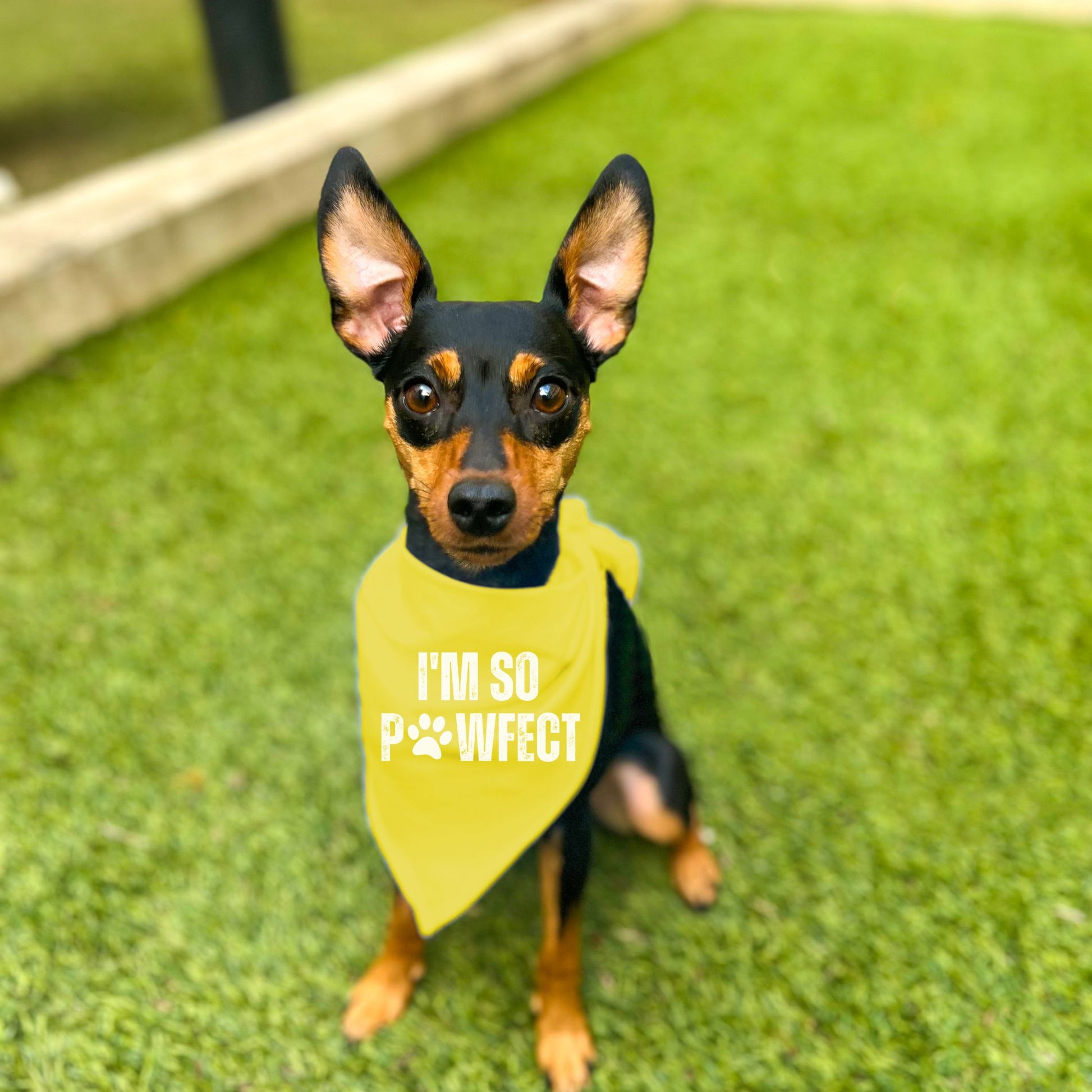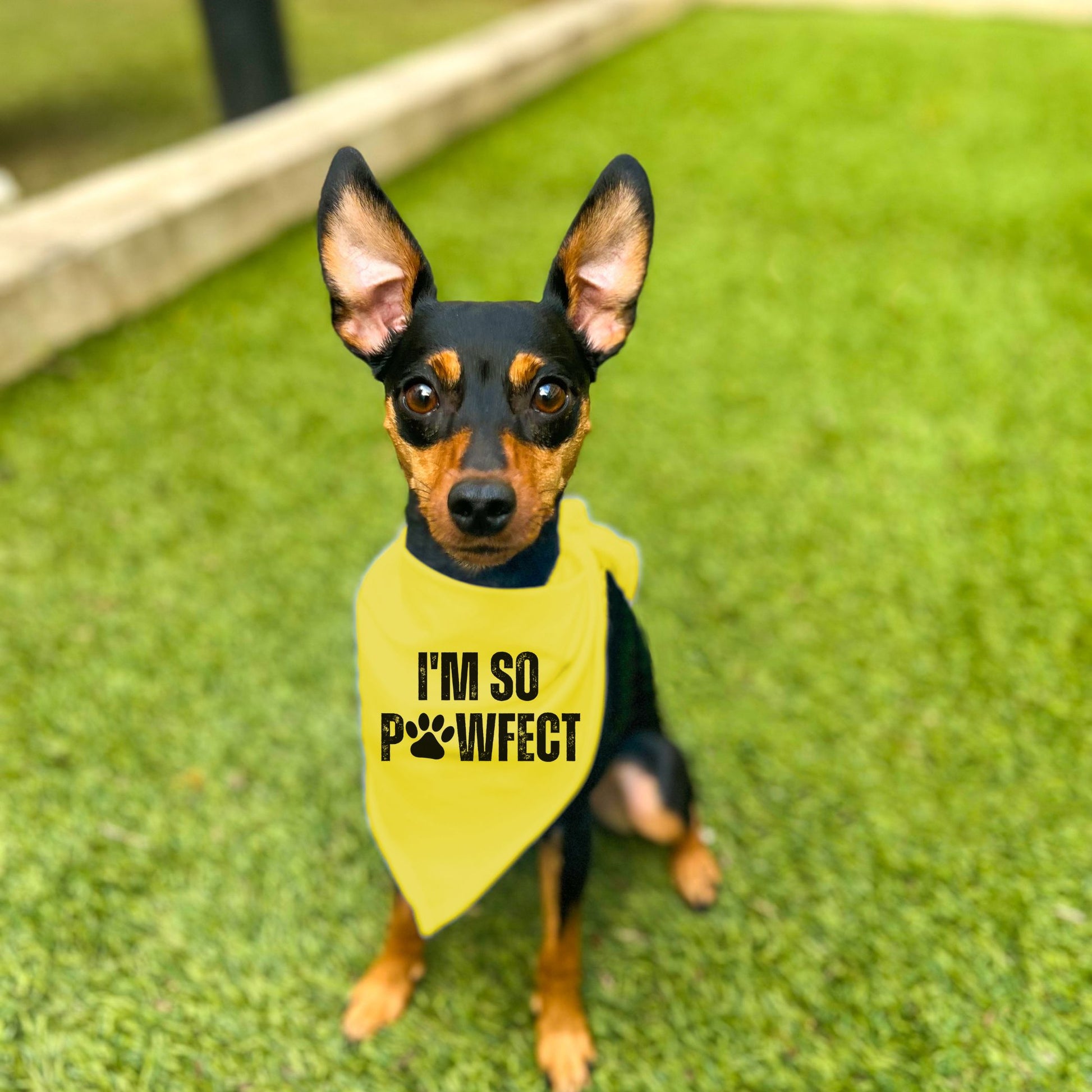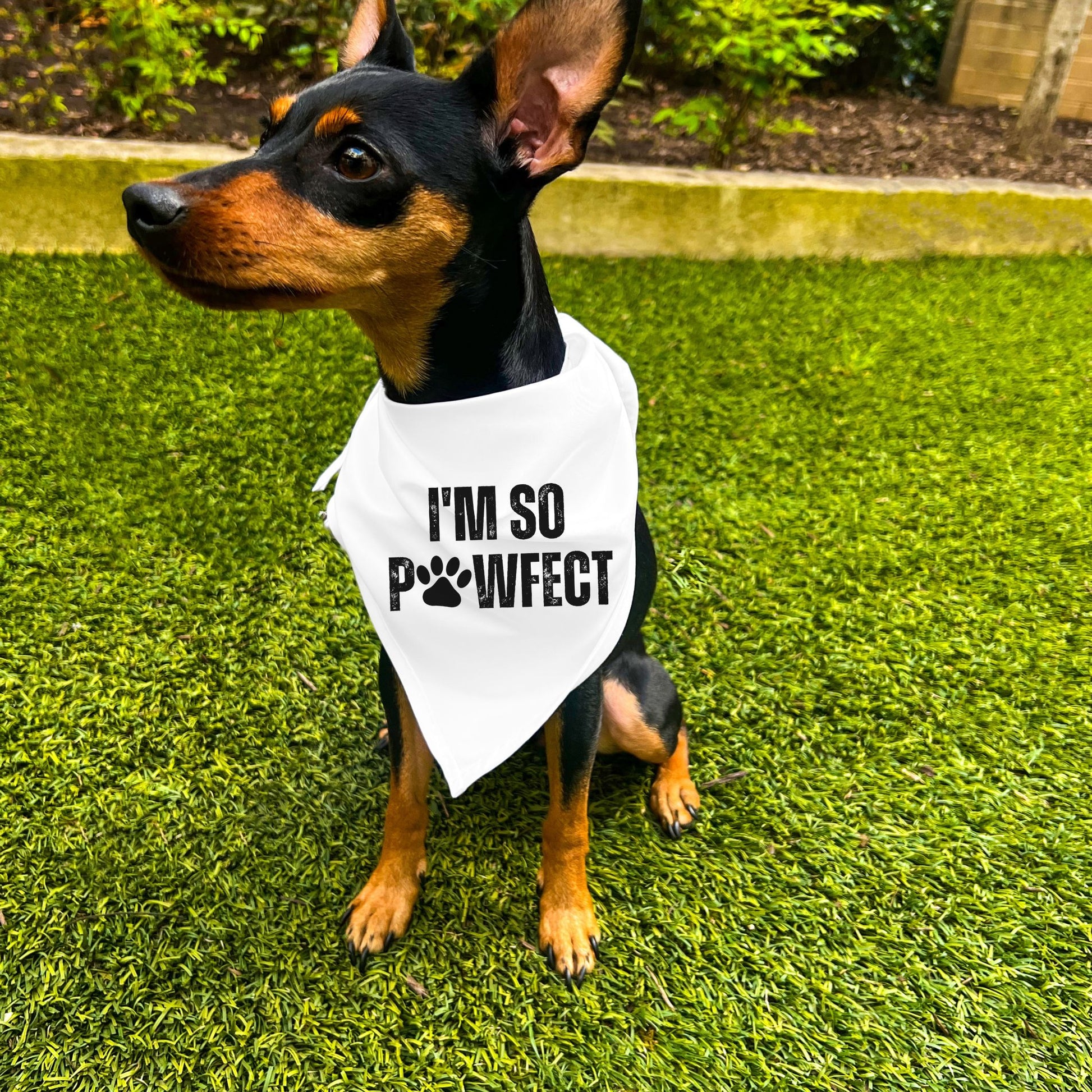 Introducing the "I'm SO Pawfect" Dog Bandana - your pup's fashion must-have! Show off your pup's style in this one-of-a-kind bandana - perfect for special occasions or just a casual stroll. With its eye-catching paw pattern, this bandana is sure to turn heads! Can your dog pull off the pawfect look?